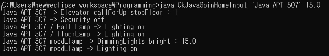 컴파일된 클래스 파일을 실행하기 위해 java 명령어를 입력한다.