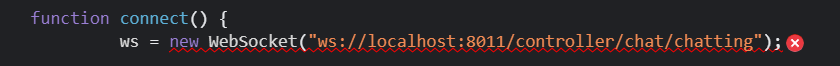 ws = new WebSocket("ws://localhost:8011/controller/chatting");